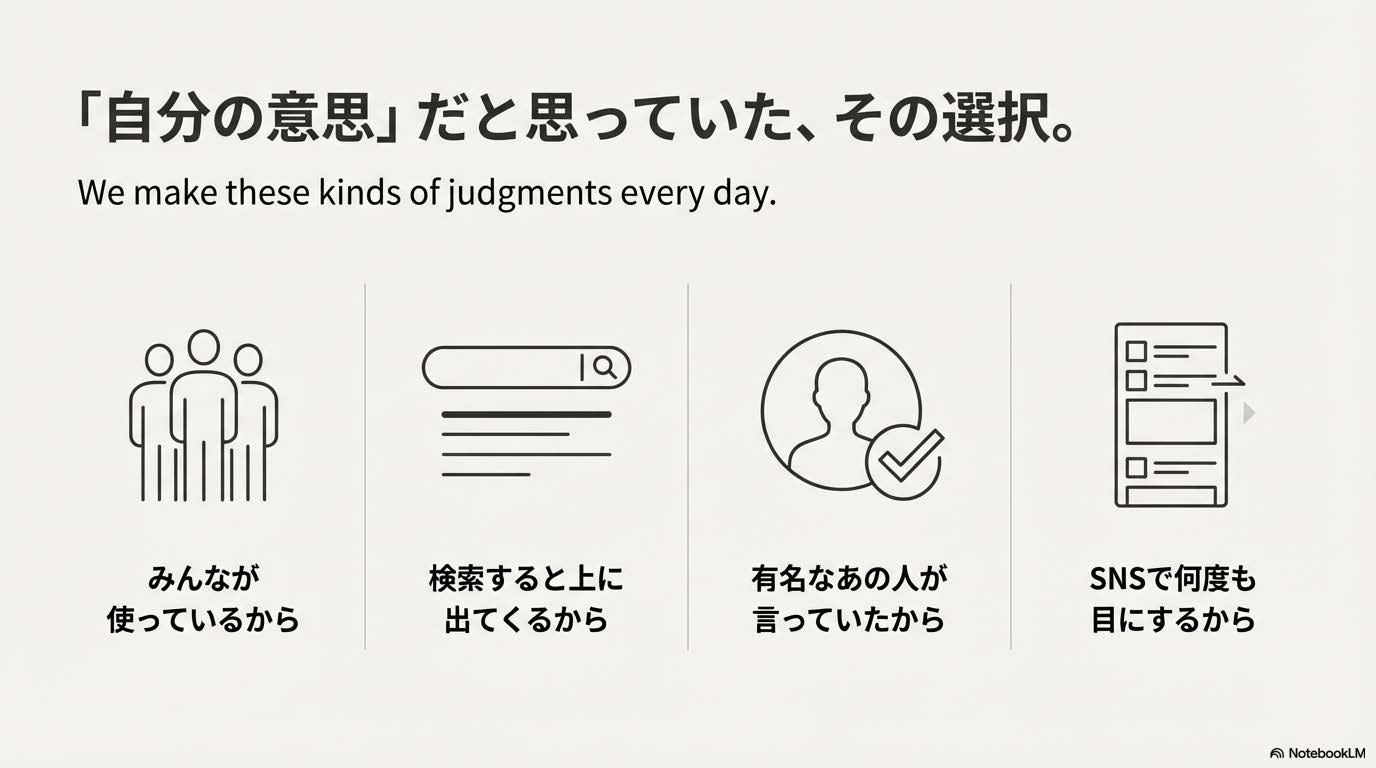 これらは一見、合理的な判断に見えます。しかし実際には、自分で考えた判断ではありません。